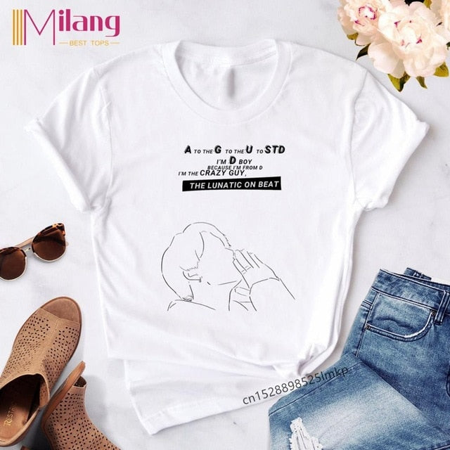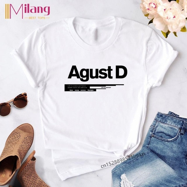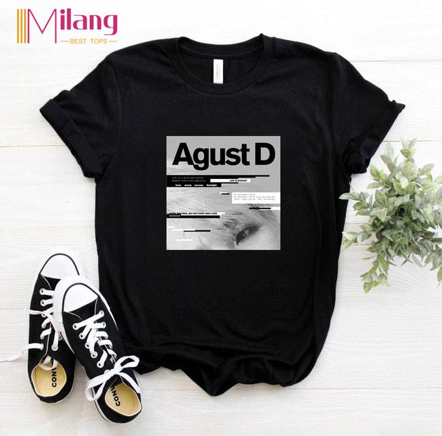 Women Agust D Black T-shirts Female Short Sleeve Tees 2020 Summer Brand Vogue Choose Clothing Girl Tops