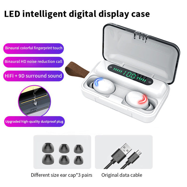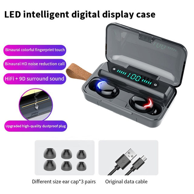2200mah F9 Wireless Headphones Bluetooth 5.0 Earphones TWS HIFI In-ear Sports Gaming Headset Support iOS/Android Phones HD Call